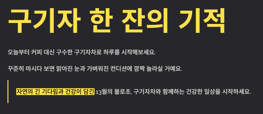 붉은 구기자 한 잔에는 자연의 긴 기다림과 건강이 담겨 있습니다. 오늘부터 커피 대신 구수한 구기자차 한 잔으로 하루를 시작해 보는 건 어떨까요? 꾸준히 마시다 보면 맑아진 눈과 가벼워진 아침 컨디션에 깜짝 놀라실 거예요.