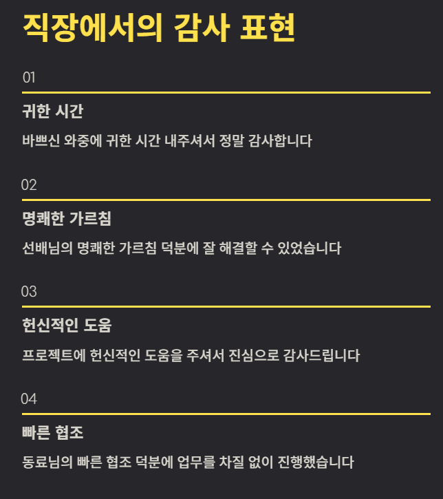 3. 직장 및 업무상 도움에 대한 감사 인사 (10가지)