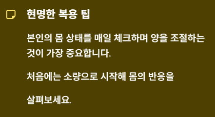 모든 사람에게 정답일 수는 없기에 자신의 컨디션을 체크하는 것이 우선입니다.