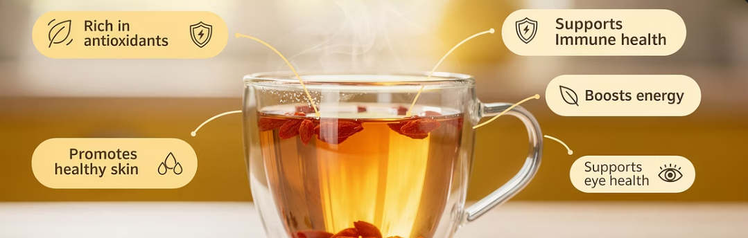 구기자차는 단순히 목을 축이는 음료를 넘어 우리 몸 곳곳에 유익한 작용을 합니다.