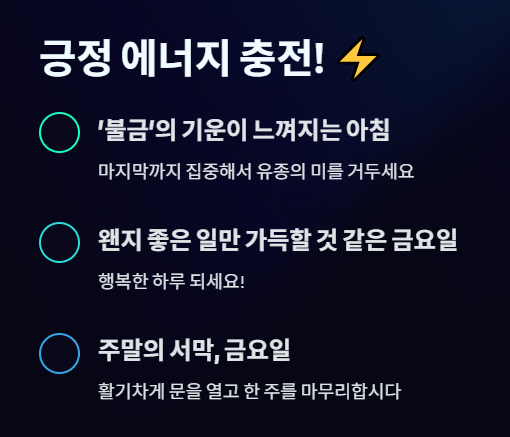 1. 🚀 아침인사! 에너지를 불어넣는 금요일 인사말 (10가지)