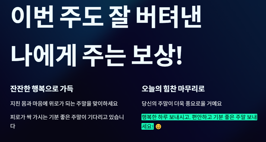 주말이라는 보상을 강조하며 마지막까지 힘을 북돋아 주는 메시지입니다.