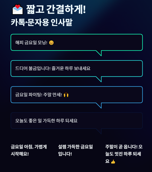2. 🥳 주말 기대감 폭발! 설렘 가득 인사말 (10가지)