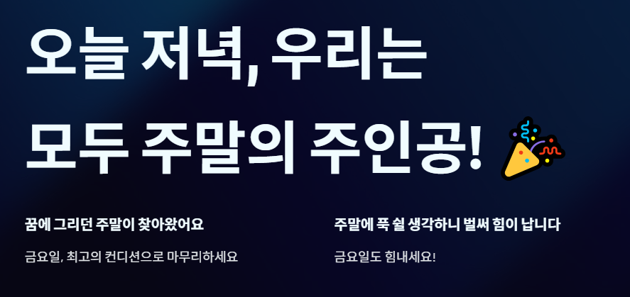 - 금요일 파이팅! 주말 만세! 🙌