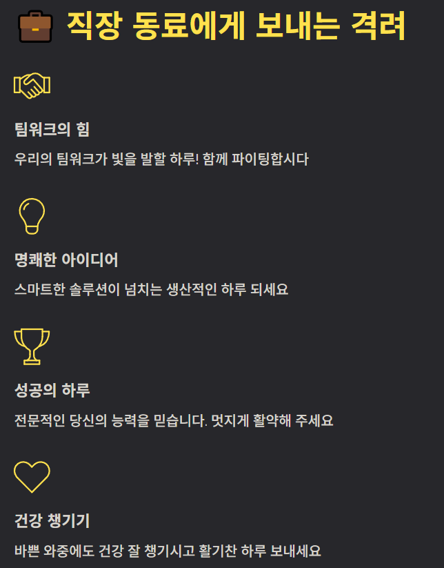 💼 3. 직장 동료 및 상사에게 보내는 격려 인사 (10가지)