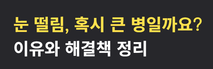 - 결론: 눈 떨림은 우리 몸이 "지금 너무 힘드니 좀 쉬어줘!"라고 보내는 신호입니다. 오늘 하루는 커피 대신 따뜻한 물을 마시고 일찍 잠자리에 들어보시는 건 어떨까요?