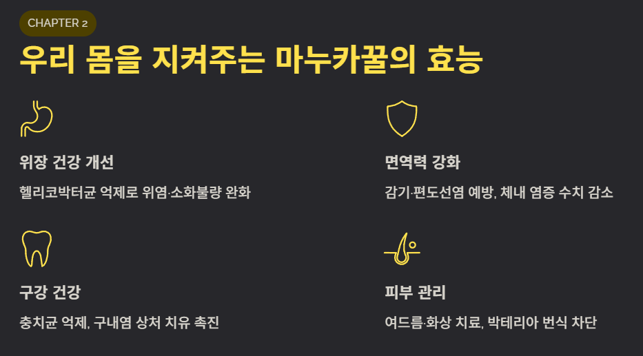 2. 우리 몸을 지켜주는 마누카꿀의 주요 효능
