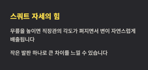 2. 올바른 배변 자세: 변기에 앉을 때 발아래 작은 받침대를 놓아 무릎을 높이면(스쿼트 자세), 직장관이 일직선이 되어 변 배출이 훨씬 수월해집니다.