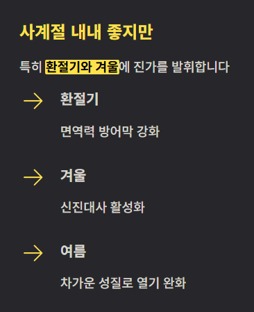 - 계절: 면역력이 떨어지는 환절기와 신진대사가 느려지는 겨울에 특히 추천합니다.